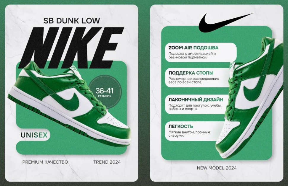 Подготовили инфографику для карточки товара «Кроссовки» на Ozon. Продумали акценты на ключевых характеристиках: материалы, амортизация, вентиляция, комфорт и сцепление подошвы.…